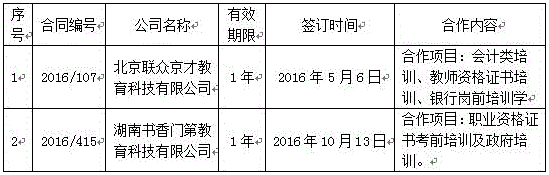 湖南商学院继续教育学院与北京联众京才教育科技有限公司、湖南书香门第教育科技有限公司签订的培训合作协议(具体合作内容见附件一)。因合作方未按照合同约定履行协议,2016年12月15日我方向贵方递送了“告知履行协议相关事项的函”,贵方在告知期限内均未做出明确答复,经研究决定与上述合作方终止协议。为了维护学校声誉和利益,避免社会学员陷入误解,特做出如下声明: