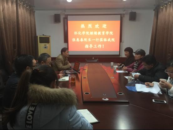 12月28日上午,怀化学院继续教育学院张惠春院长一行4人来校学习交流自学考试学习服务中心建设以及教育培训工作。继续教育学院领导及相关科室负责同志参加了座谈会。