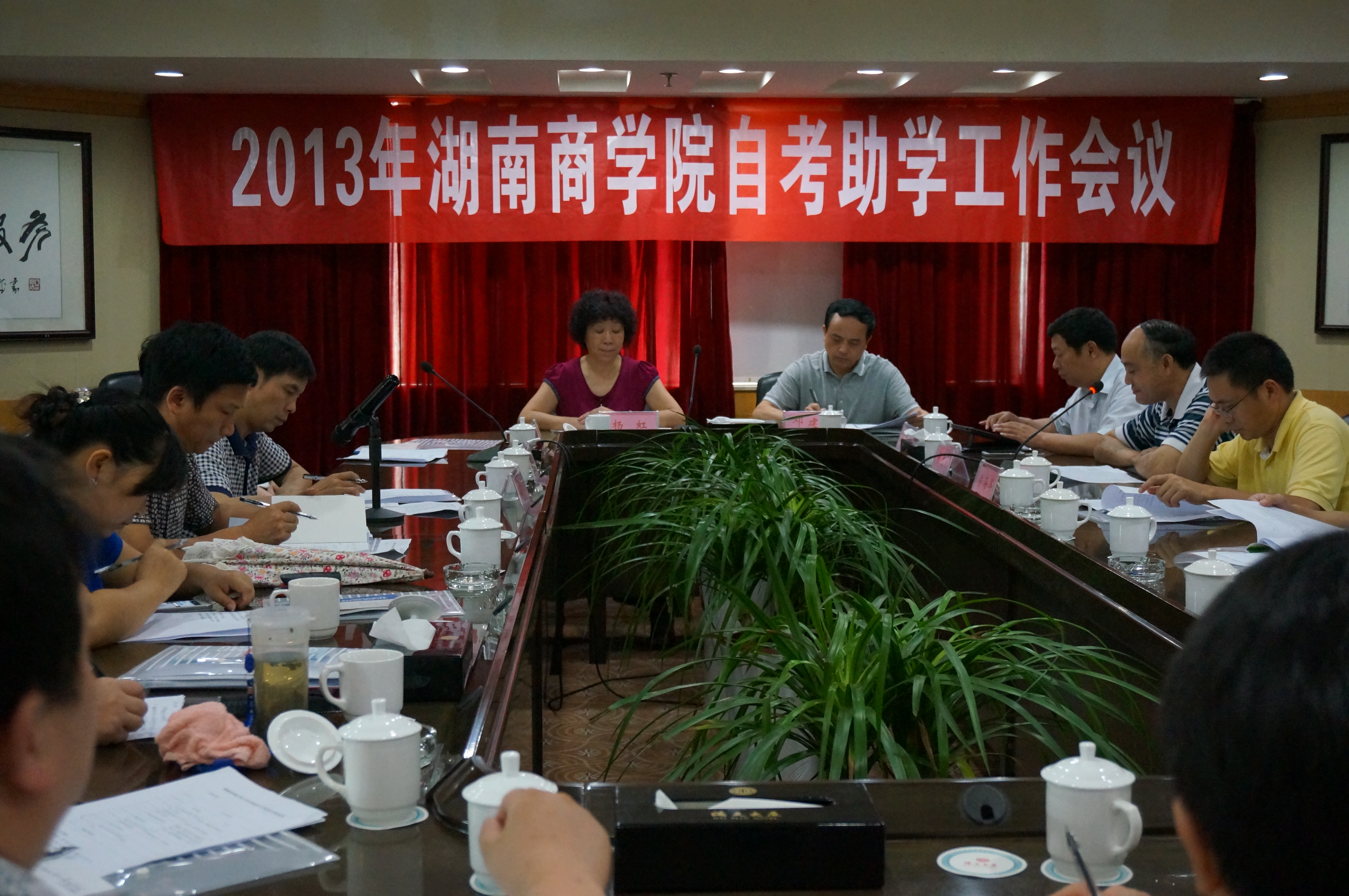 2013年湖南商学院自学考试工作会议于7月13日下午在海天大厦召开。我校20多个助学单位自考负责人、以及继续教育学院全体领导和自考办工作人员计30余人参加会议。省教育考试院主管自考工作副院长邓建国、自考处处长邱业吉、长沙市教育考试院院长及我校主管自考工作副校长杨虹出席会议并作重要讲话,继续教育学院副书记张孟秋主持会议。
